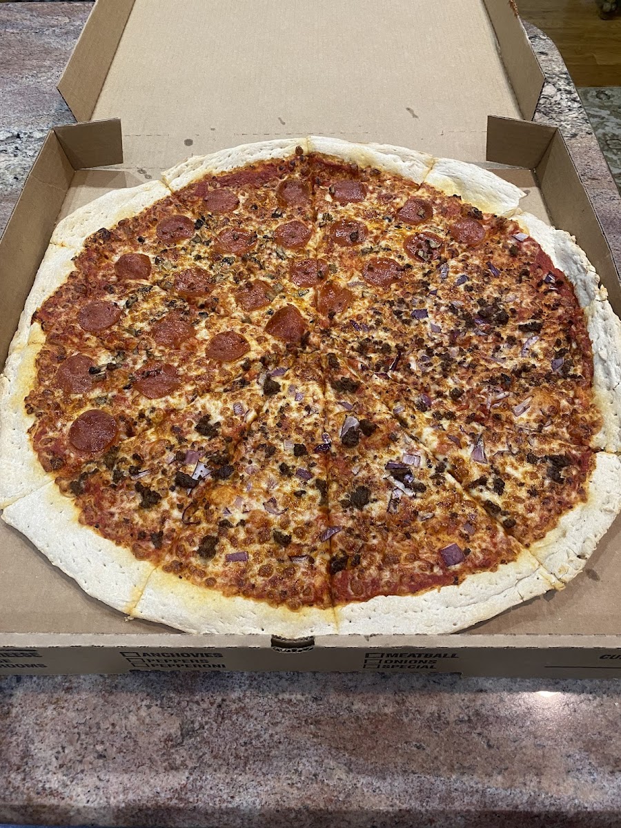 I have to say…it was pretty good pizza. Reminded me of The Orange Bowl. The large is absolutely huge (20 inches).